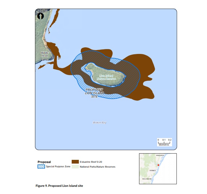 Lion Island is located in Broken Bay. A special purpose zone is proposed covering a 45 hectare area within 200 metres of the Island (Figure 9).