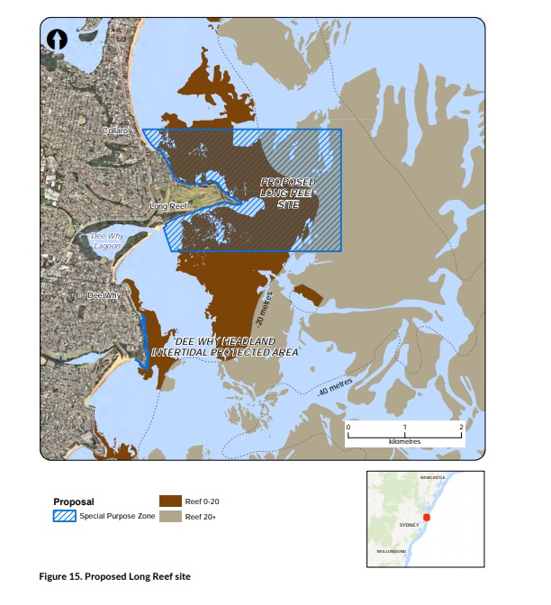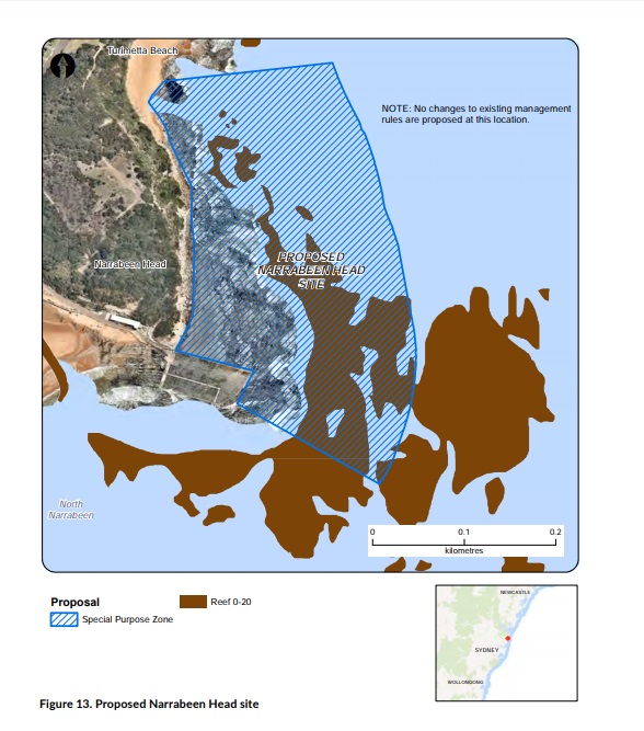 The site is located at North Narrabeen Headland on Sydney’s northern beaches. It is proposed to establish a special purpose zone to replace the existing aquatic reserve. No changes to management rules are proposed.