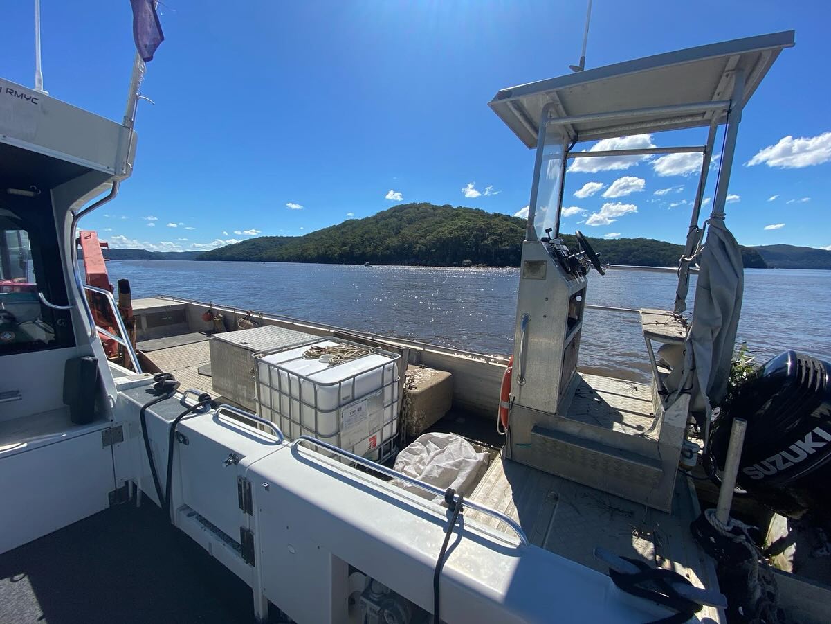 MRCP on the Hawkesbury retrieving an adrift barge and refuse that had been dislodged by flooding - April 2024