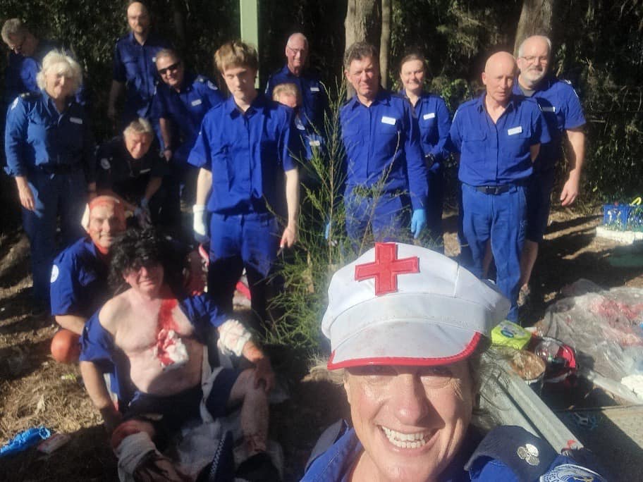 One of Marine Rescues' top First Aid and Advanced Resuscitation trainers around; Leanne Chandler (Leanna is at the front of photo - and conducting a training exercise - no one is hurt in this photo; they're practicing)