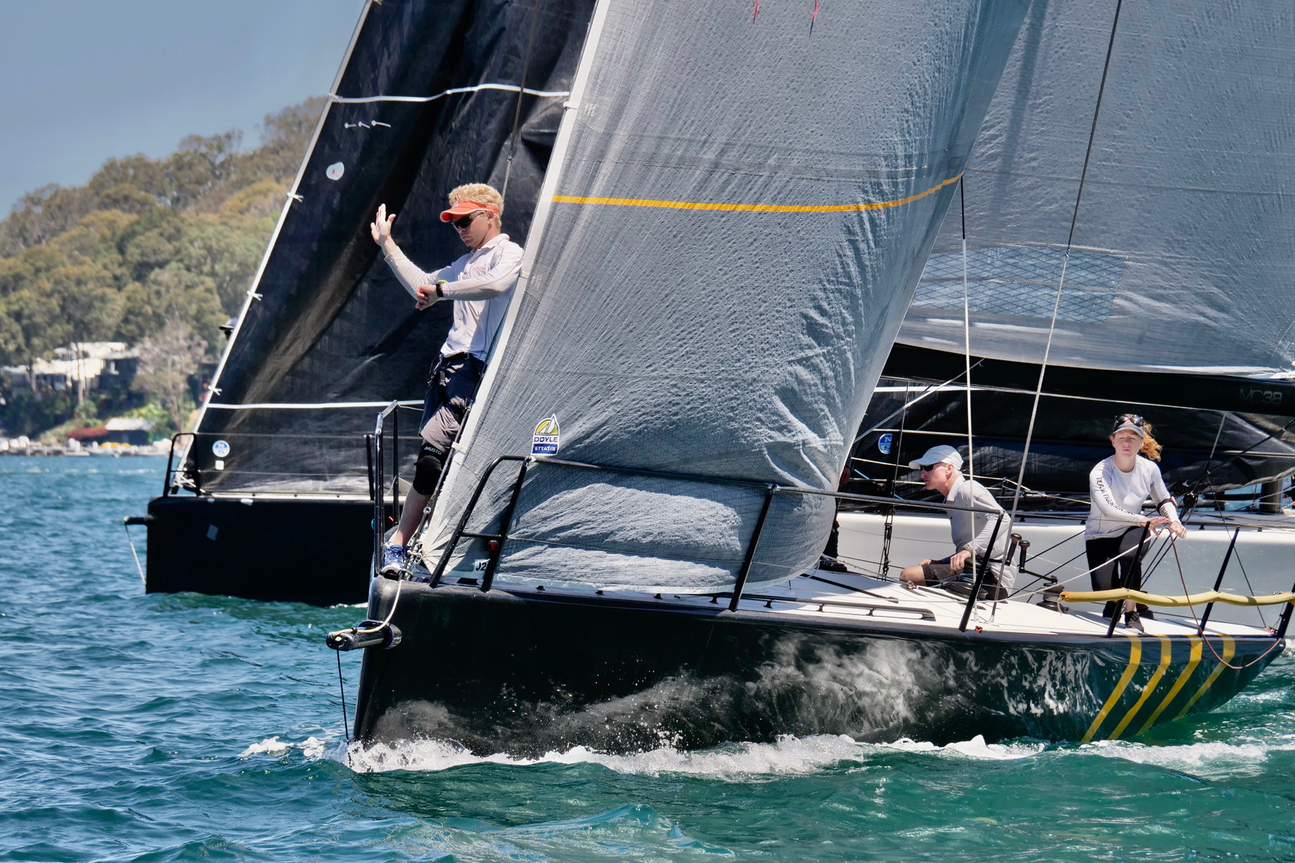 A frustrating stop-start beginning to day two of the MC38 2018 Season’s Act 5 included a general recall in light NE winds, a course reset to ENE then that race blown off by the Royal Prince Alfred Yacht Club’s race management team. The fleet then returned to the NE start line for the race five completion followed by a postponement and a relocation back to Morning Bay on Pittwater’s western shore for the easterlies that eventually locked in for races six and seven, and built nicely to 11-14 knots.