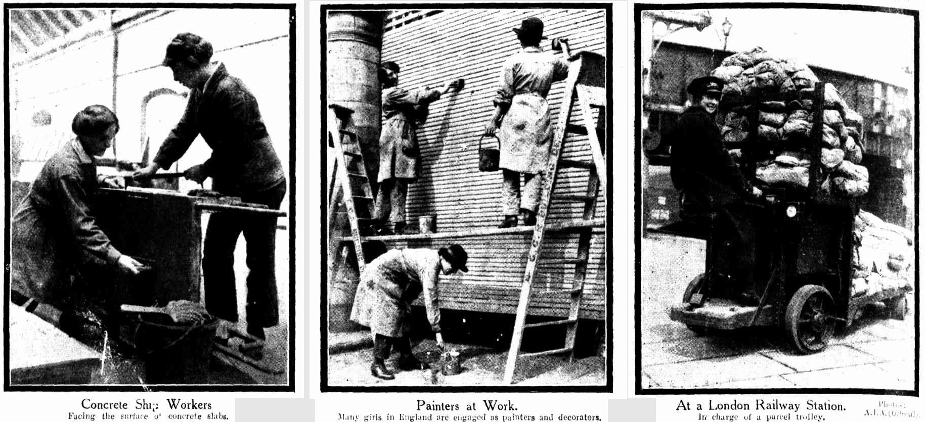 The illustrations on this and the previous page do not actually illustrate the article, but they have an important bearing on the matter discussed. The photographs were taken in England and France , where women are engaged in all kinds of work.