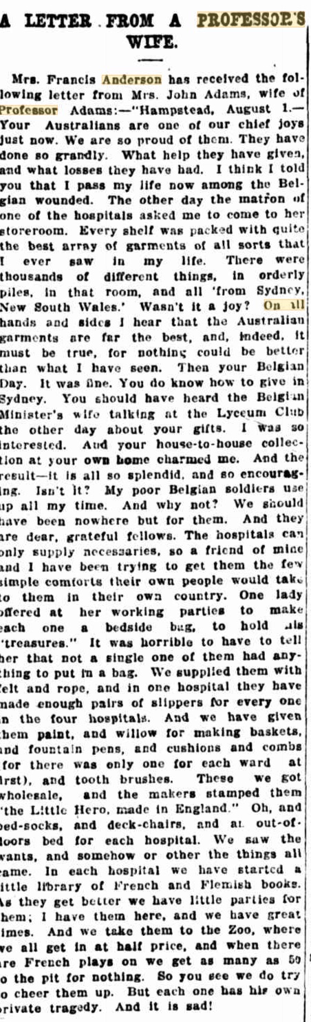In the month preceding this, November 1918, an article penned by Bayview resident Maybanke Anderson, 'Women's Work After the War', focusing on women's contributions during WWI, gave emphasis to the element which had drawn support from serving members during the first lapsed bill and certainly remained a factor during the 1918 debates. That article runs in full below, outlining some of the work undertaken by women during that conflict and it also called for women to be recognised as part of the workforce, and more succinctly, called not just for 'equal pay' but for a living wage. Maybanke states women, as much as men, to have the right to be employed to support dependants in the post-war era. The support for and reemployment of men to smooth their change from being in a war back into society was justifiably a priority. There were women who were working to support feeding hungry mouths and keeping a roof over the heads of loved ones prior to and after this conflict though, mostly on a very poor wage - one that kept them one step away from destitution or worse.