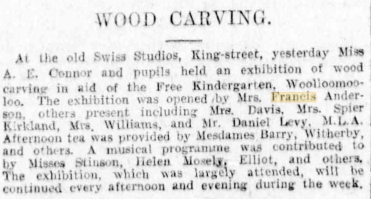 It was this spirit of trying to brighten the lives of others, especially little children, that prompted Mrs. Curnow to work heart and soul for the Free Kindergarten, the cause nearest to her heart. Through her energy and devotion, and with the hearty co-operation of Mrs Frances Anderson and Miss Louisa Macdonald, a branch of the Free Kindergarten was founded in Newtown many years ago, and it proved a blessing to the young children in the slum area in which it was situated.