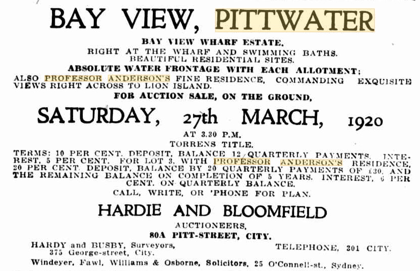 A CLEAR conscience, a good digestion, a sense of humor, and to be happily married, is the prescription for happiness of Professor Francis Anderson. But ability to drive a good bargain is an attribute from which the professor, who is returning to Hunter's Hill to live, derived happiness while in England. He bought a second-hand car, and with his wife at the wheel, motored thousands of miles sight-seeing without a puncture and without engine trouble. Six months of constant use, then he sold the car for £20 less than be paid for it.Secrets of the Town (1930, February 23). The Sun (Sydney, NSW : 1910 - 1954), p. 17. Retrieved from http://nla.gov.au/nla.news-article226030838