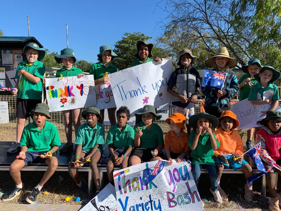 Day six started with a visit to St Francis Catholic School in the rural township of Hughenden. With only 34 students, the school went above and beyond to put on a breakfast of kings, and the students gave the Bashers a rousing rendition of ‘Rockin’ Robin’ to thank them for visiting. Variety donated $6,000 worth of outdoor musical equipment to the school, which judging by their vocal talents will be put to great use.