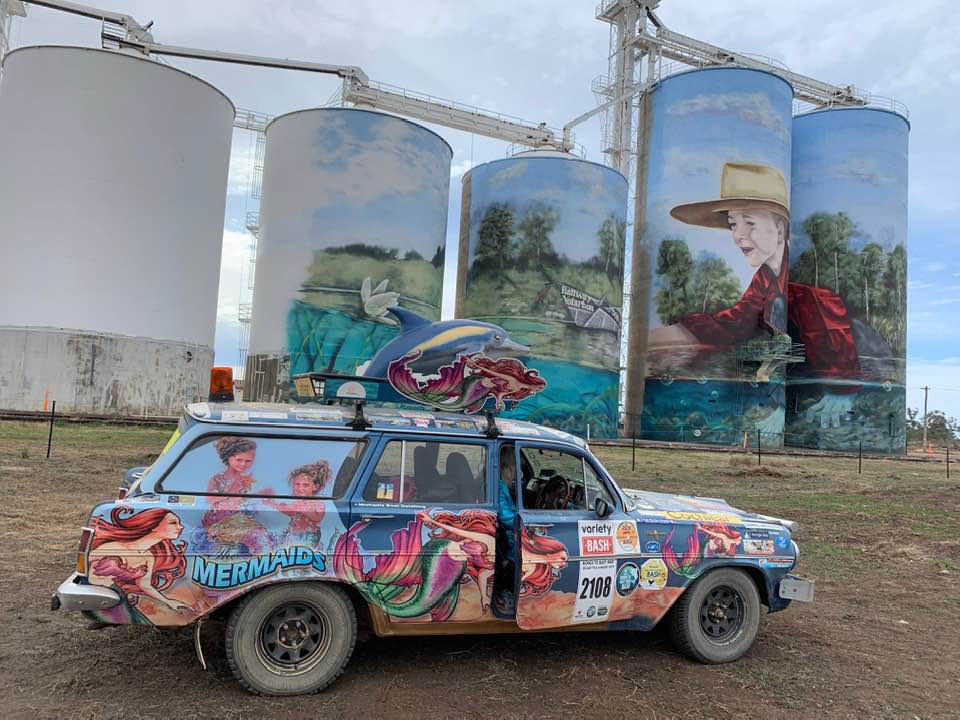 Painted silo at Yelarbon - visited the Painted Silo Art Trail information page: this one was only completed on July 5th, 2019, a few weeks prior to the Mermaids swimming through!