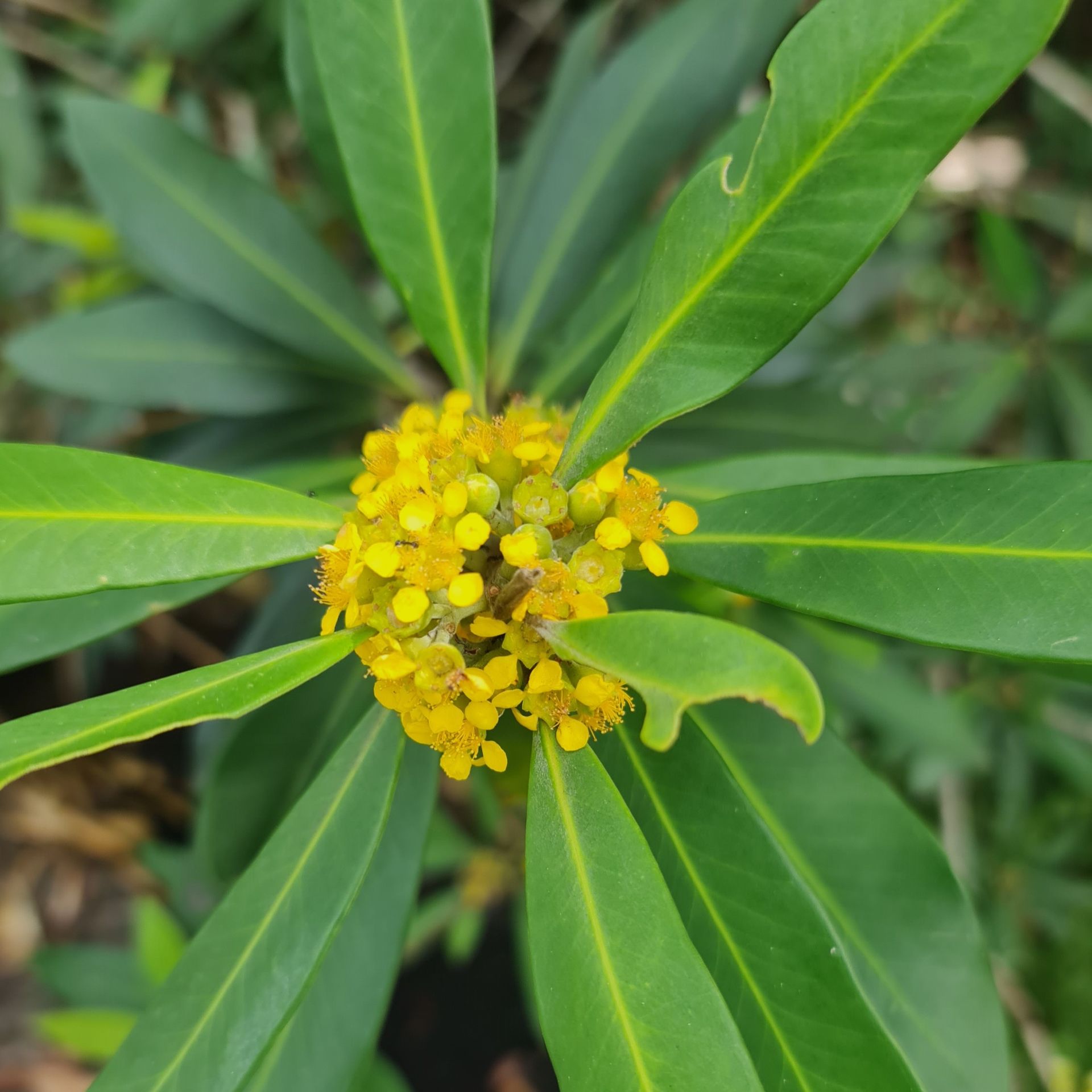 Miniature flowers now in bloom of Tristaniopsis laurina, the Water Gum or Kanooka, a tree native to Australia, where it usually grows near the eastern coastline and along the banks of streams, where the trunks and branches tend to be shaped in the direction of the current and give an indication of flood heights.