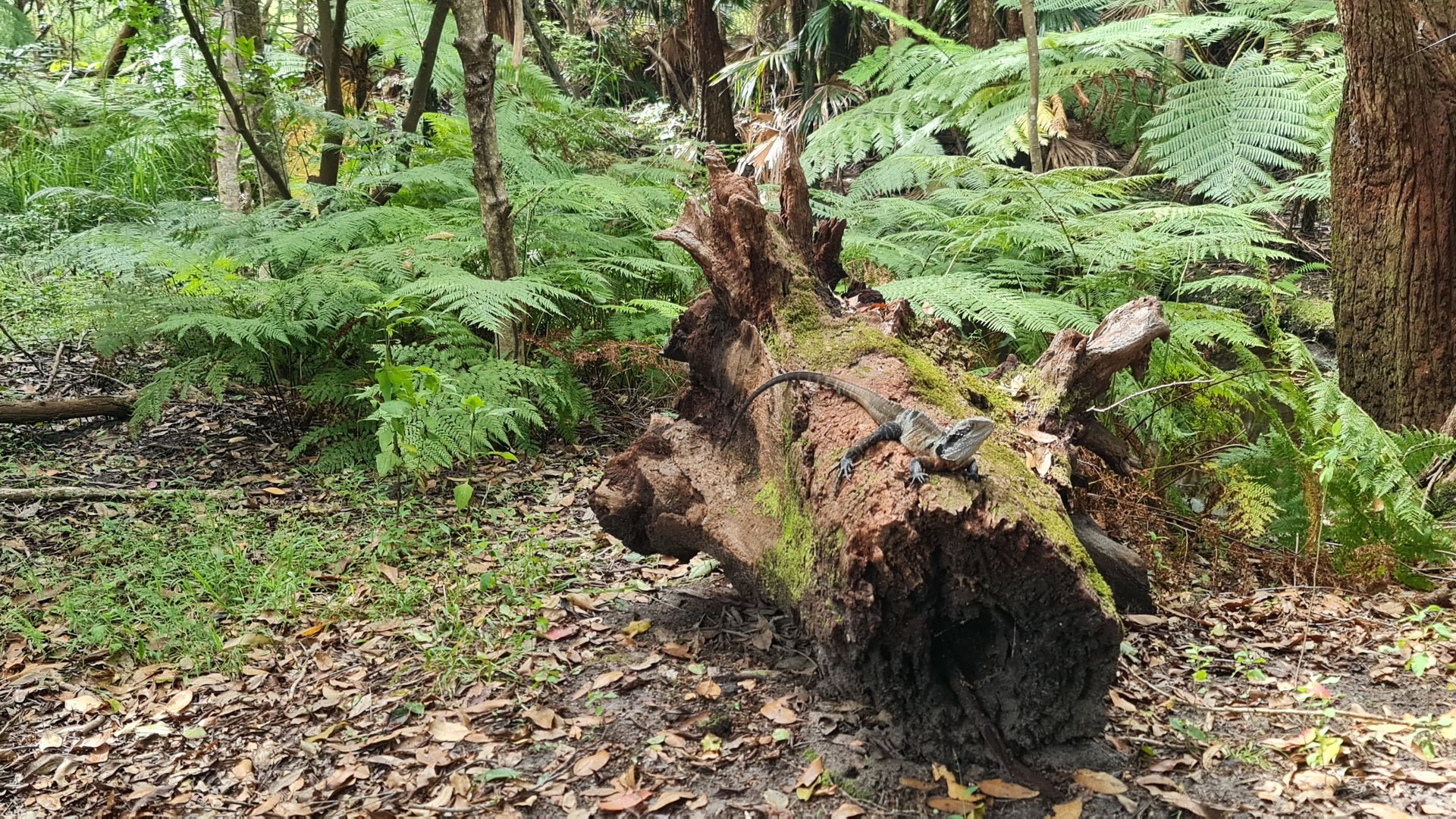 Male Australian Water Dragon, Intellagama lesueurii, on log