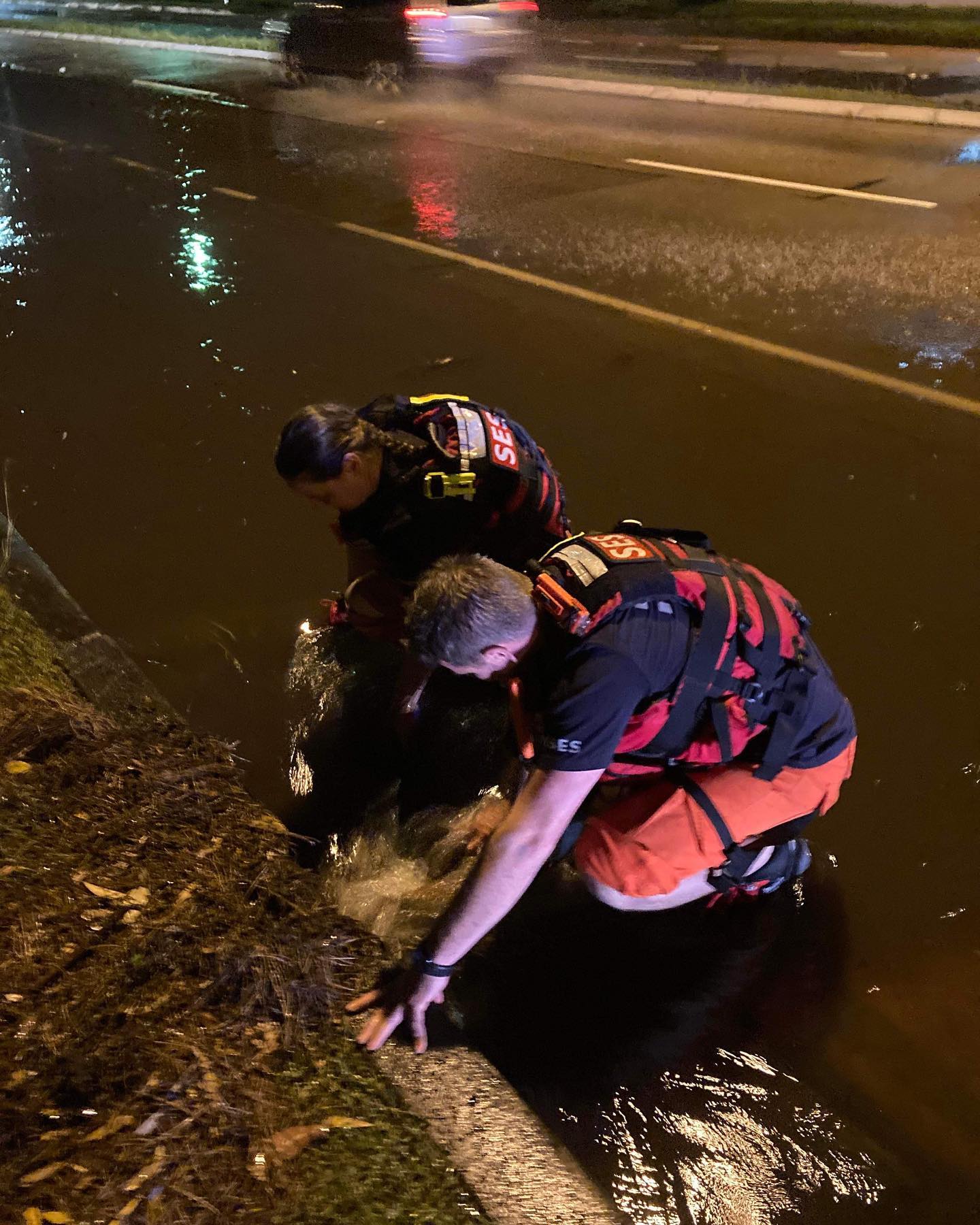 July 2022: Corner of Barrenjoey Road and Careel Head road floods in rains, with some drivers crossing double lines on that corner and into lane of southbound vehicles