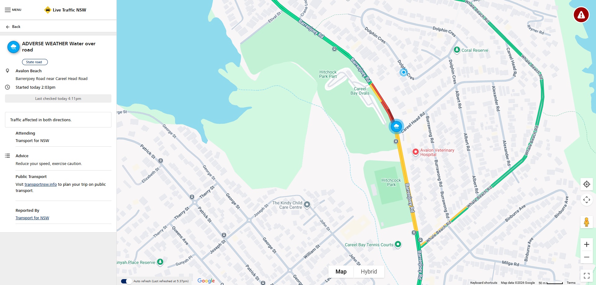 Careel Head-Barrenjoey Road section, January 17 2026. Photo: Adam L'Green/FB