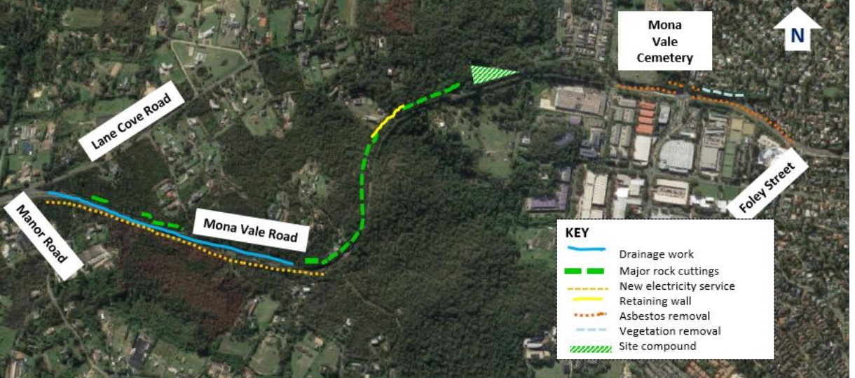- clearing vegetation on the southern side of Mona Vale Road. Some clearing is still required near the Cemetery and near Emma Street on both sides of Mona Vale Road