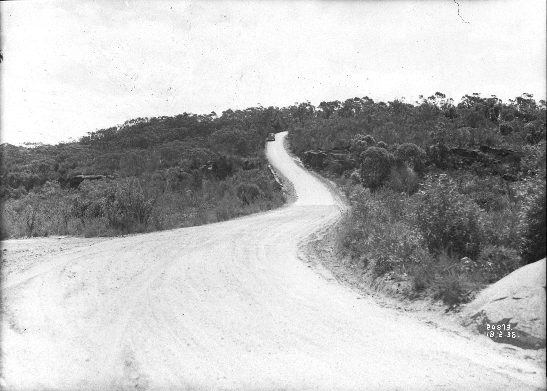 Mona Vale road at Tumble Down Dick hill, February 18, 1938, Courtesy NSW State Records and Archives, item: FL3607190