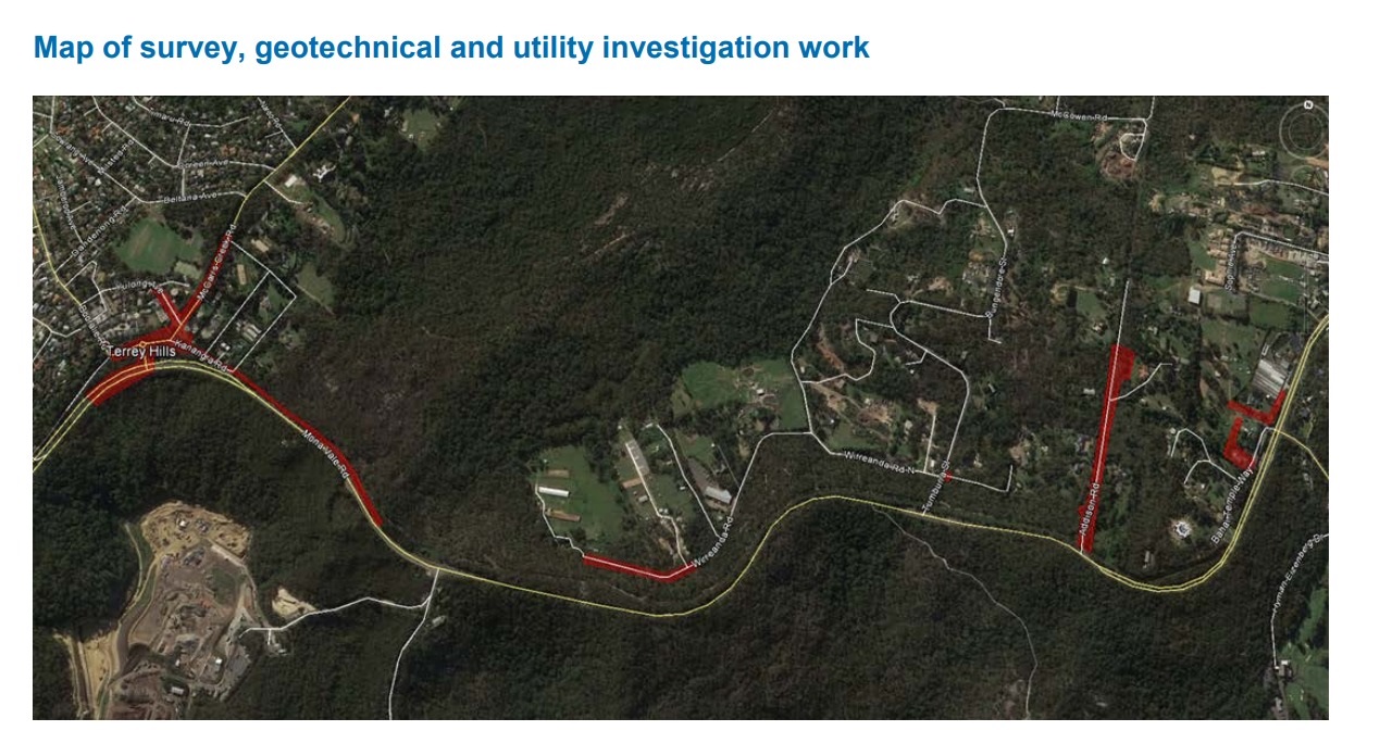 Roads and Maritime Services will carry out further survey, geotechnical and utility investigation work along parts of McCarrs Creek Road, Mona Vale Road, Wirreanda Road, Addison Road and Bahai Temple Way from Monday 13 August.