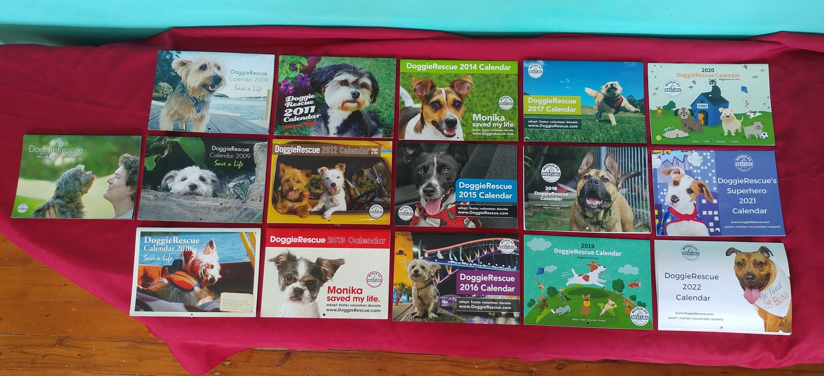 some of the Pittwater Online News Monika's DoggieRescue calendars for family and supporters from last year - we've ordered another batch for Christmas gifts this year too.