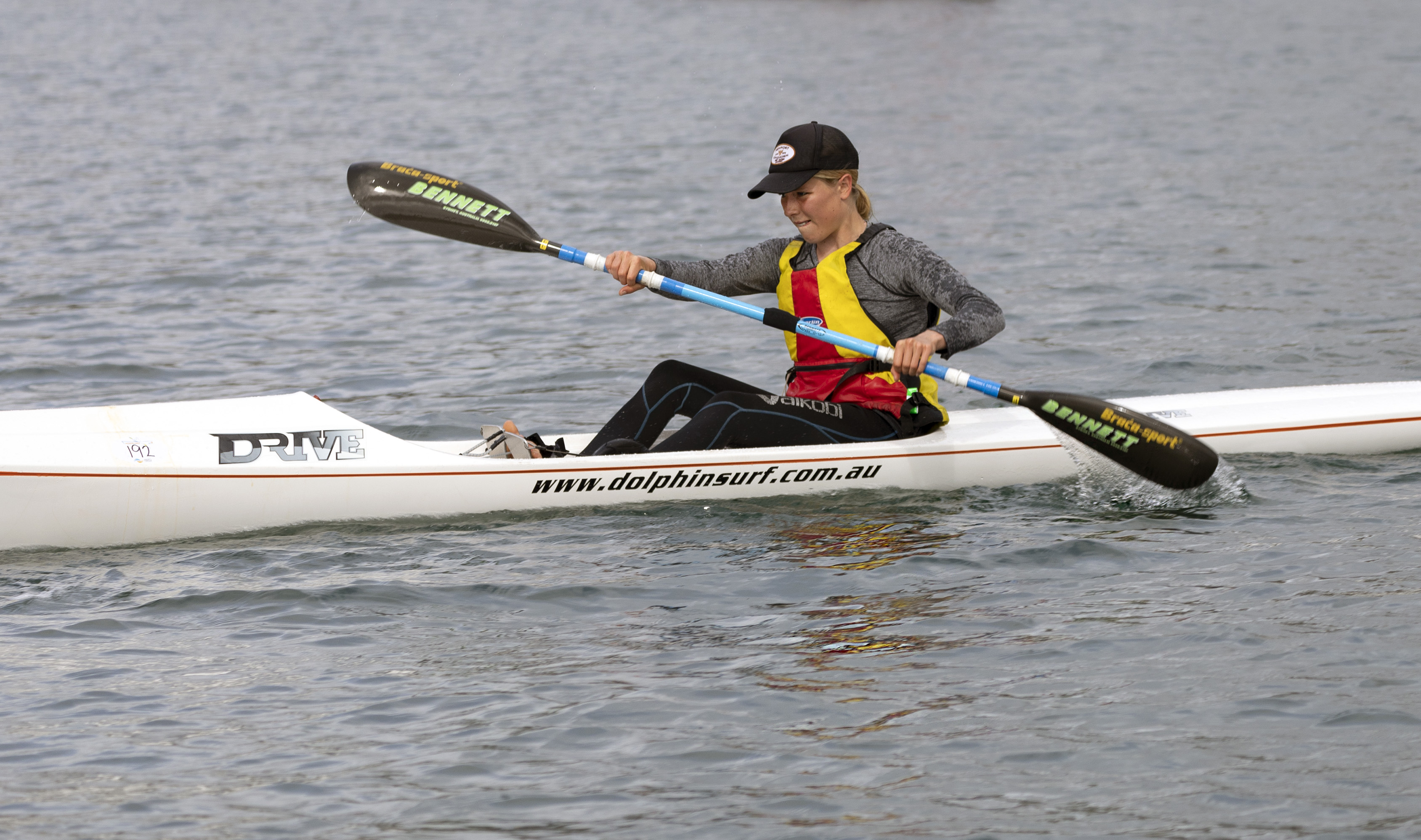 Casey, a first-timer at the NBI Pittwater Paddle who competes internationally and finished third in this year’s gruelling 51km Molokai 2 Oahu ocean event, was pushed hard around the scenic racetrack by another Pittwater Paddle first-timer, Chris Wilson, in his debut Ski race.