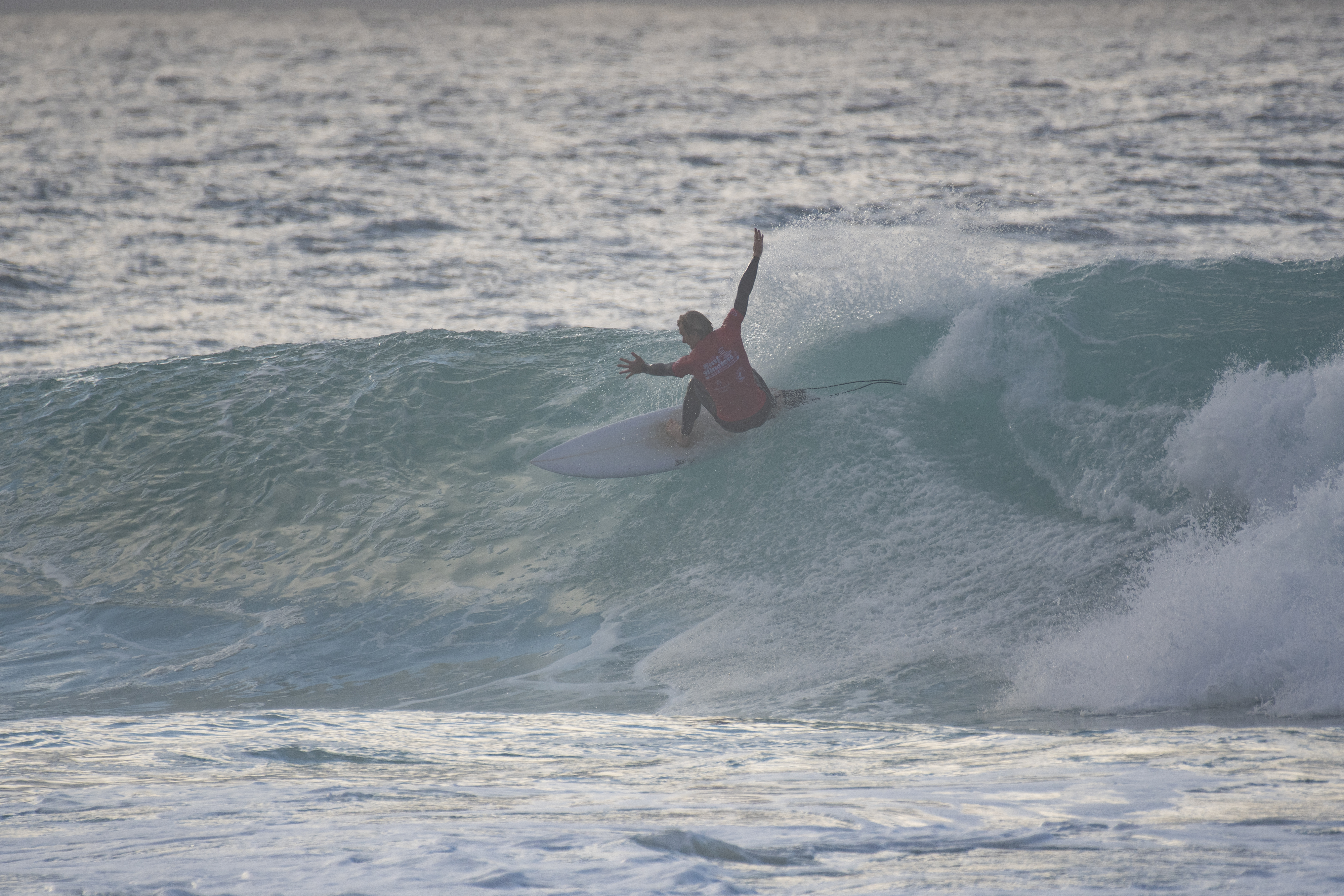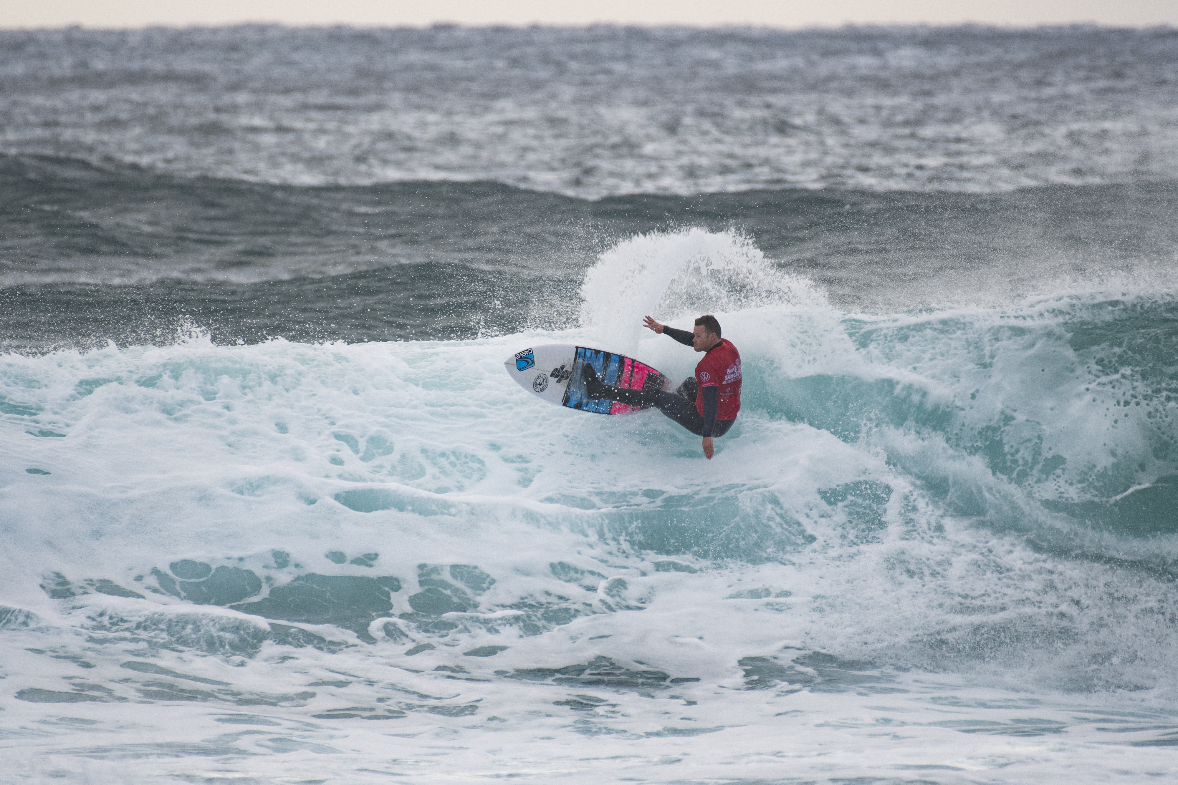 Nic Squiers (Corrimal), Matt Hoar (Dalmeny), Mitch Dawkings (Nelson Bay) and Sharpe brothers Cameron and Randall (Shelly Beach) all put on dominant displays of surfing in the opening heats of the Over-35 Mens with all surfers claiming heat wins with a handful of decent wave scores. As a result, all five surfers will bypass the repechage rounds and make their next appearance in the quarterfinals.