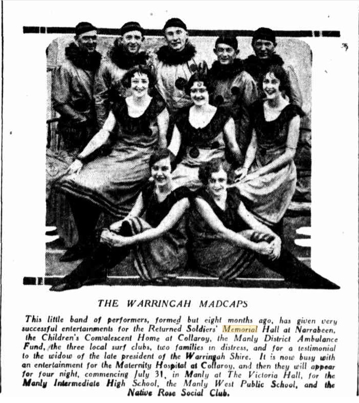 The branch of the Anzac Relief Division which operates from Dee Why to Palm Beach has acquired Liberty Hall, Narrabeen as headquarters. A free library is being formed by gifts. NARRABEEN RELIEF G.H.Q. (1931, August 19). The Daily Telegraph (Sydney, NSW : 1931 - 1954), p. 8. Retrieved from http://nla.gov.au/nla.news-article246715416