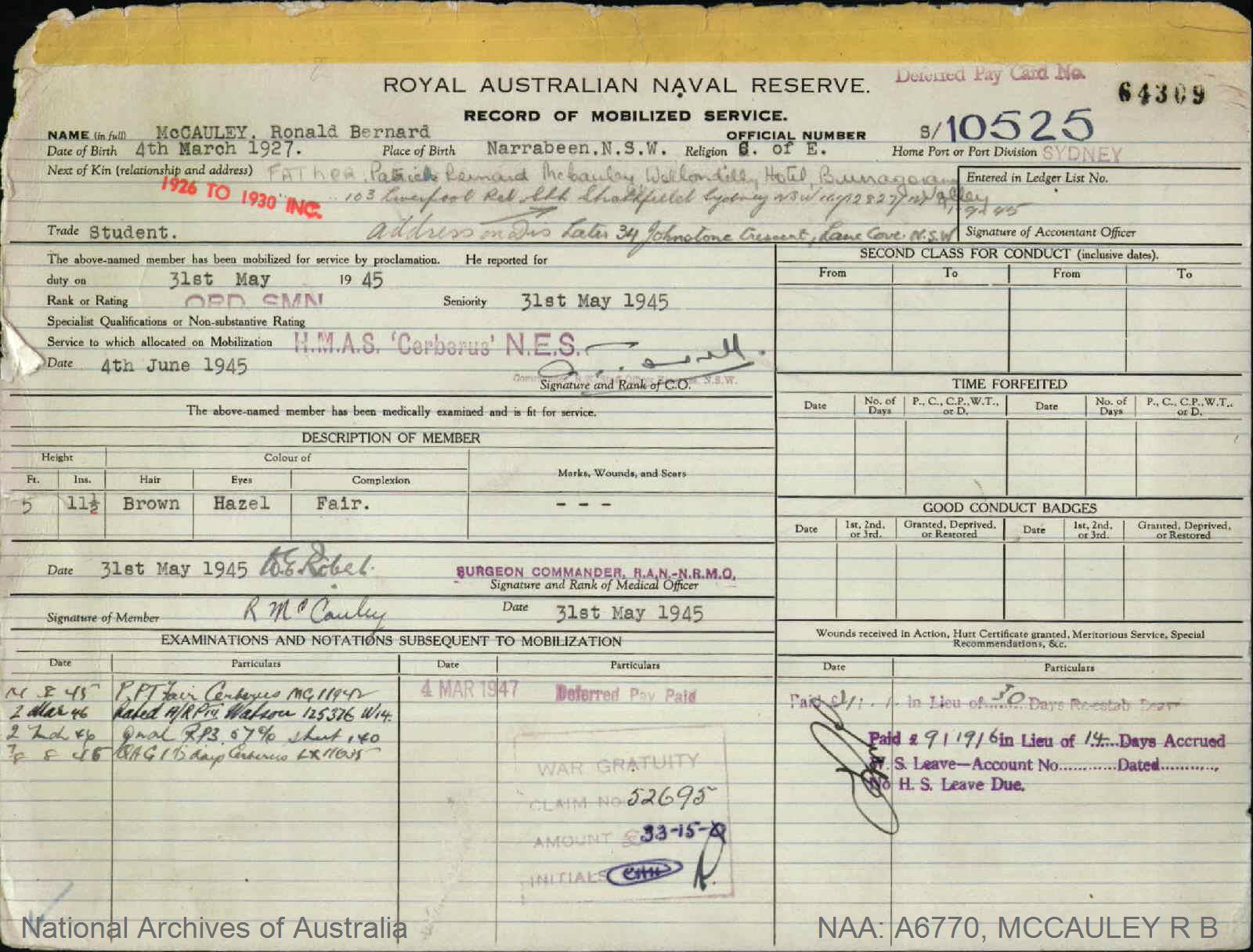 MCCAULEY ROBERT BERNARD 1927 - PATRICK B EVELYN M - NARRABEEN