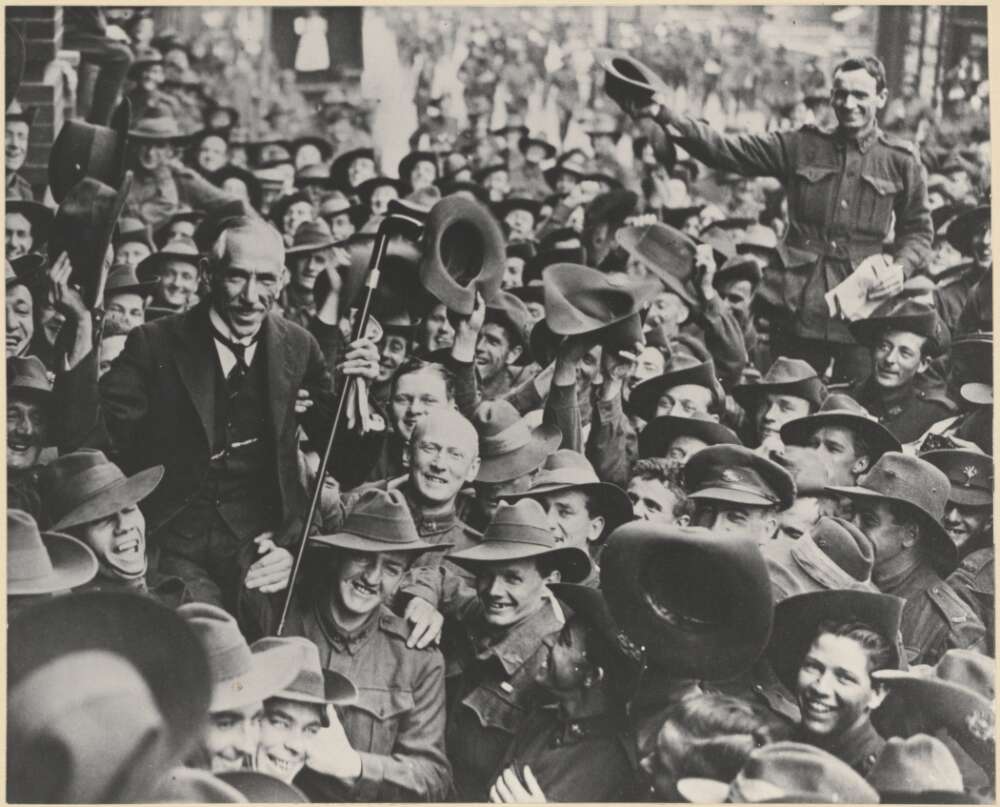 The declaration of war came in the middle of a federal election campaign in Australia. Even before war broke out, Prime Minister Joseph Cook and Opposition Leader Andrew Fisher had pledged their full support for the British Empire. In a speech at Horsham, Victoria, on 31 July 1914, Cook said, ‘Remember that when the Empire is at war, so is Australia at war … all our resources in Australia are ... for the preservation and the security of the Empire.’ On the same day, in Colac, Fisher declared, ‘Australians will stand beside our own to help and defend her [Britain] to our last man and our last shilling.’