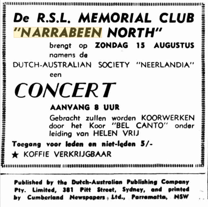 The Narrabeen RSL Club in its present location has been servicing and supporting the community since 1956, which means this year the club and its members are celebrating their 65th year. The club would like to hear from or see any old photographs people have associated with its members and history.