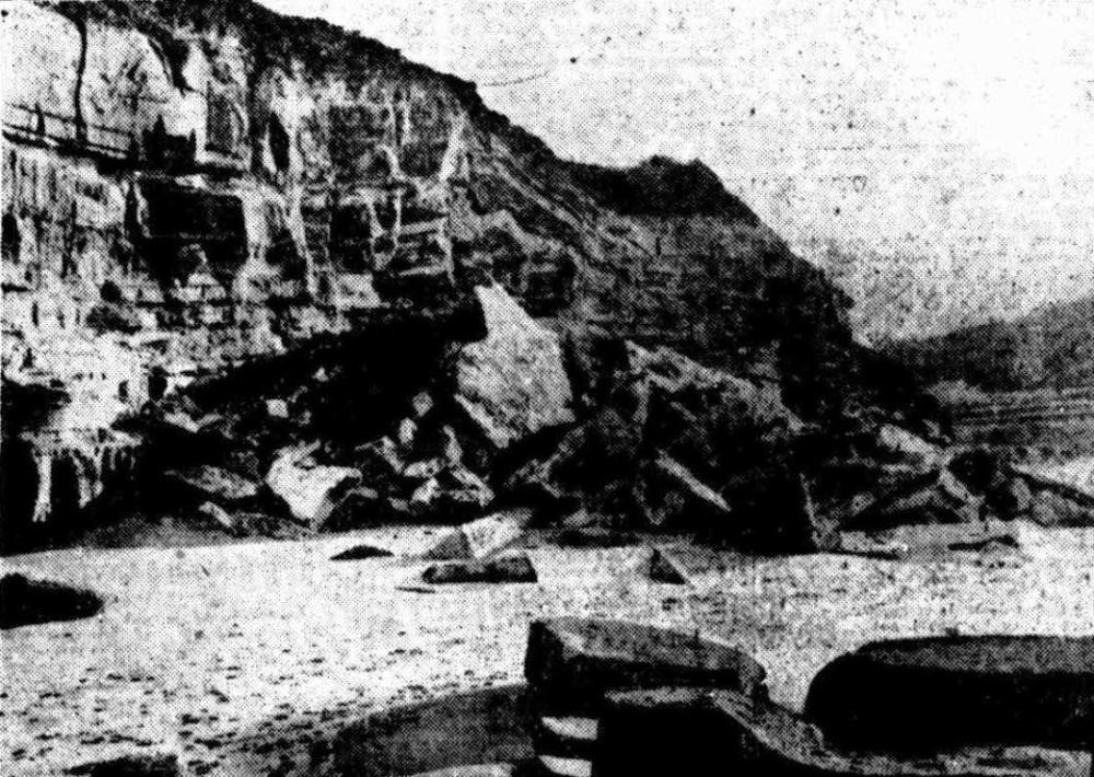 The Rev. R T Wade, of Killara, who forwarded to us the photography of which the above is a reproduction, writes - "The headland at the south end of Collaroy Beach consists of alternating beds of sandstone and shale. The lower beds, because of oxidation and other chemical changes, have expanded, and forced the upper beds into the small but well-marked anticline in the centre of the view." GEOLOGICAL CHANGES AT COLLAROY. (1925, April 13). The Sydney Morning Herald (NSW : 1842 - 1954), , p. 10. Retrieved from http://nla.gov.au/nla.news-article16212688