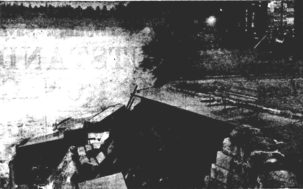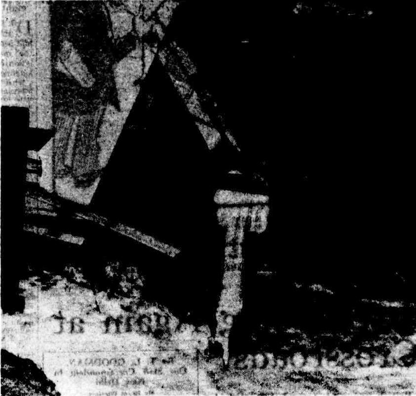 At 10 a.m. the huts had disappeared in the sand trench, but gusts of sand still floated up from tho energetic shovels. Soon afterwards Narrabeen rejoiced! The first trickle of the revolutionary waters of the lagoon threaded its way along the channel, and was lost in the boiling froth of the Pacific. Men and women sat along the steep banks of the new channel and felt as satisfied as residents do at the cutting of a ribbon opening a new railway section, or the throwing in of a switch starting a new electric light plant. The trench was cut with a considerable fall towards the sea and by 11.30 a.m. a tumultous river swept along the channel from the lagoon. The light was won. The flood had been defeated! Water began to drop a little In the backyards, but It will be many hours before any decided change Is shown In the 300 acre expanse of swollen lagoon. This afternoon the council gang has to contend with land slides or rather sand slides that threaten to obstruct the channel.
