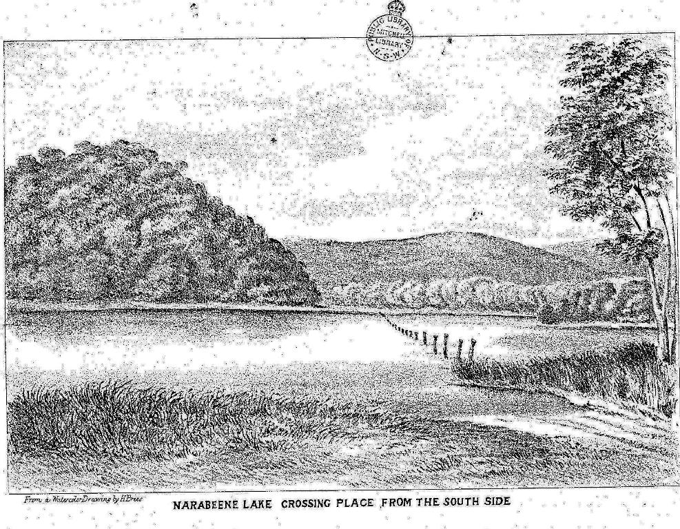 The original way across Narrabeen Lagoon was simply a path that could be waded on at certain low tides, as described in 'My Holiday' by Charles de Boos in 1861: