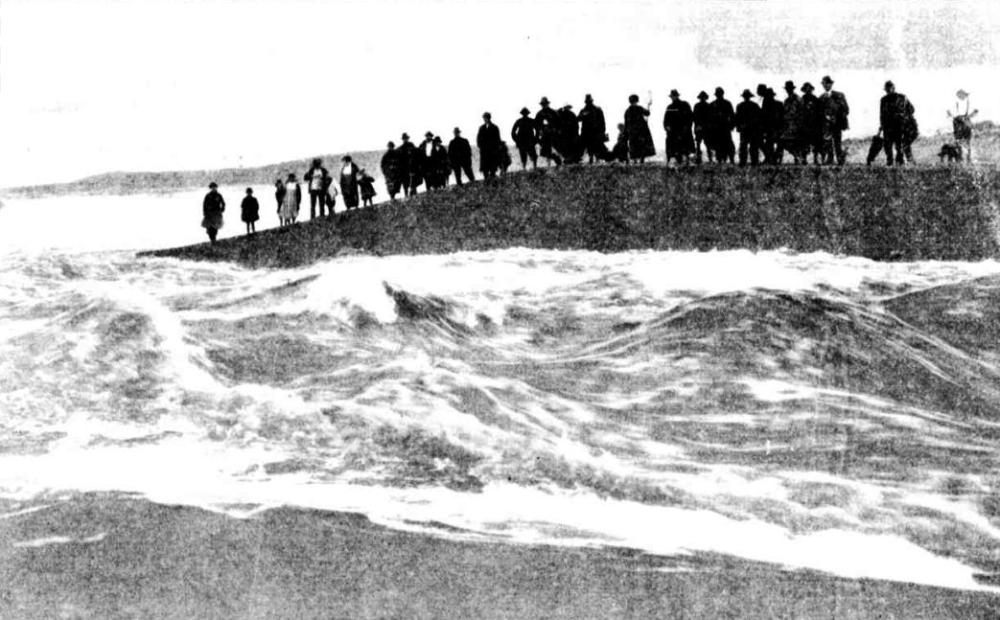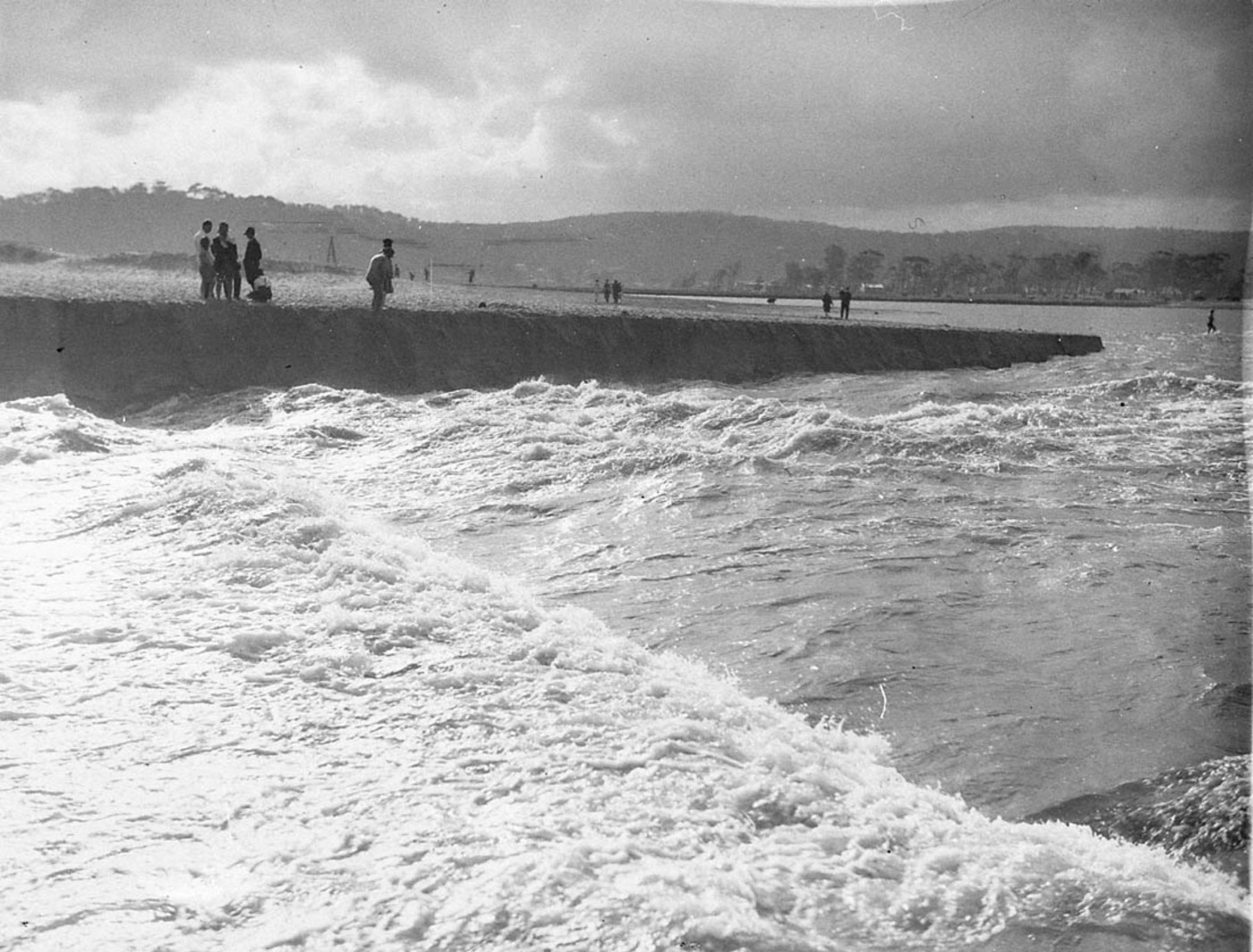 Just as in 1913, when people gathered to either watch or help council workers cut a channel from the lagoon to the sea to mitigate flood waters, every time since the works have attracted a crowd of spectators: