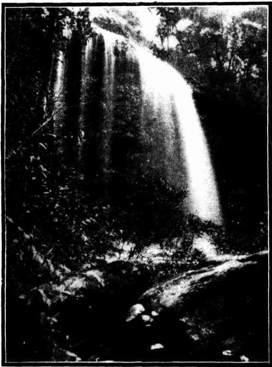 THE watersheds of the coastal lagoons at Manly, Curl Curl, Deewhy, and Narrabeen are, in the main, rolling uplands, interspersed with deep sheltered gullies densely clothed in underscrub, in some places literally impassable for the tangle of vine and undergrowth. Each gully is traversed by a creek, a veritable babbling brook of the poets, smaller or larger according to the area it drains. The descent is usually steep. Nearly every creek has waterfalls, which vary in height, from a few feet to twenty or thirty, flowing through soil composed of silt from the higher lands and the decaying debris of the bush, gum leaves, and rotten wood, which with sand from the erosion of the rocks makes up a compost of the highest degree of fertility. Common bracken grows in these places to the height of a man, and boronia (binnata) to the same size. The coachwood, a cousin to Christmas bush, may also be seen at its best; the flowers are somewhat similar to those of the latter, but larger, and the petals are wider separated. The foliage is also much larger, making a beautiful shade tree. It does not thrive away from its damp gullies; otherwise it would be seen more in suburban gardens.