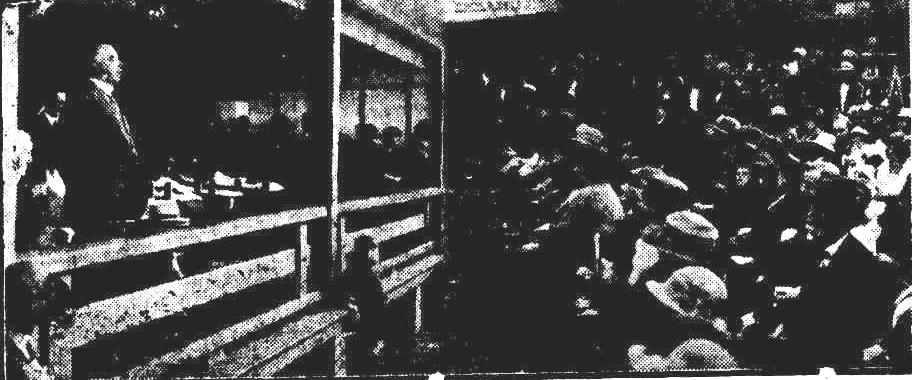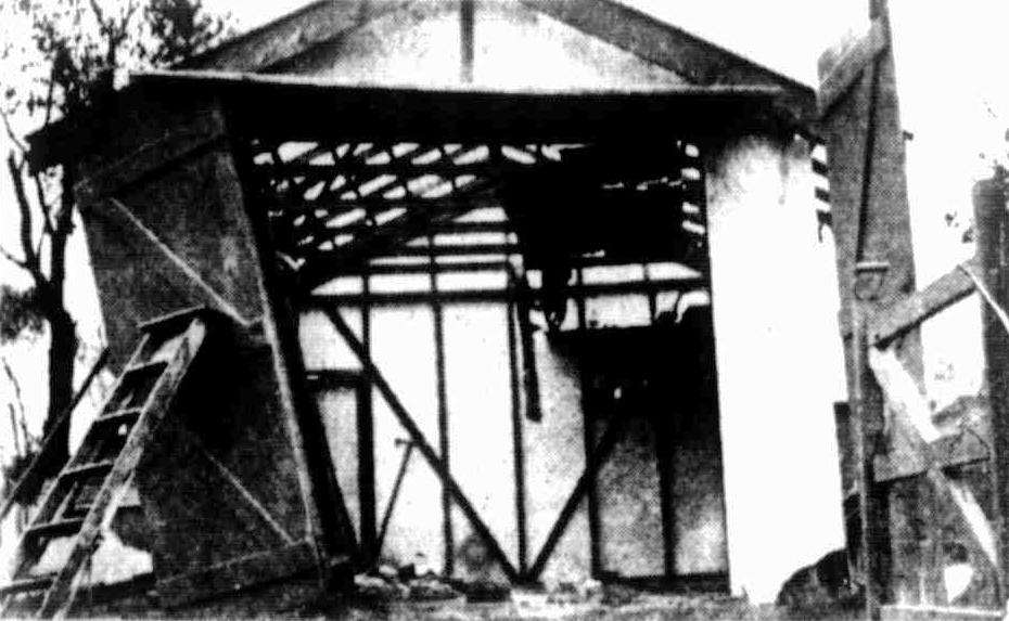 At 10 a.m. the huts had disappeared in the sand trench, but gusts of sand still floated up from tho energetic shovels. Soon afterwards Narrabeen rejoiced! The first trickle of the revolutionary waters of the lagoon threaded its way along the channel, and was lost in the boiling froth of the Pacific. Men and women sat along the steep banks of the new channel and felt as satisfied as residents do at the cutting of a ribbon opening a new railway section, or the throwing in of a switch starting a new electric light plant. The trench was cut with a considerable fall towards the sea and by 11.30 a.m. a tumultous river swept along the channel from the lagoon. The light was won. The flood had been defeated! Water began to drop a little In the backyards, but It will be many hours before any decided change Is shown In the 300 acre expanse of swollen lagoon. This afternoon the council gang has to contend with land slides or rather sand slides that threaten to obstruct the channel.