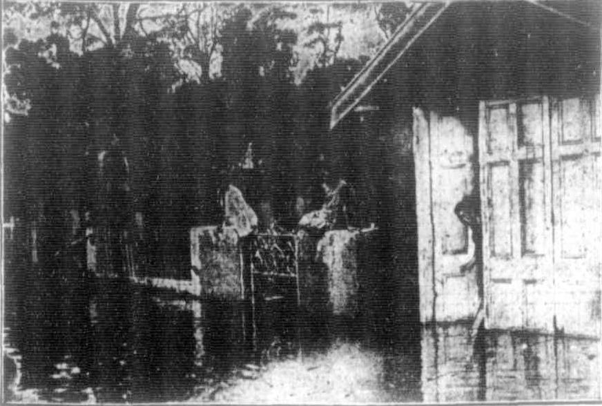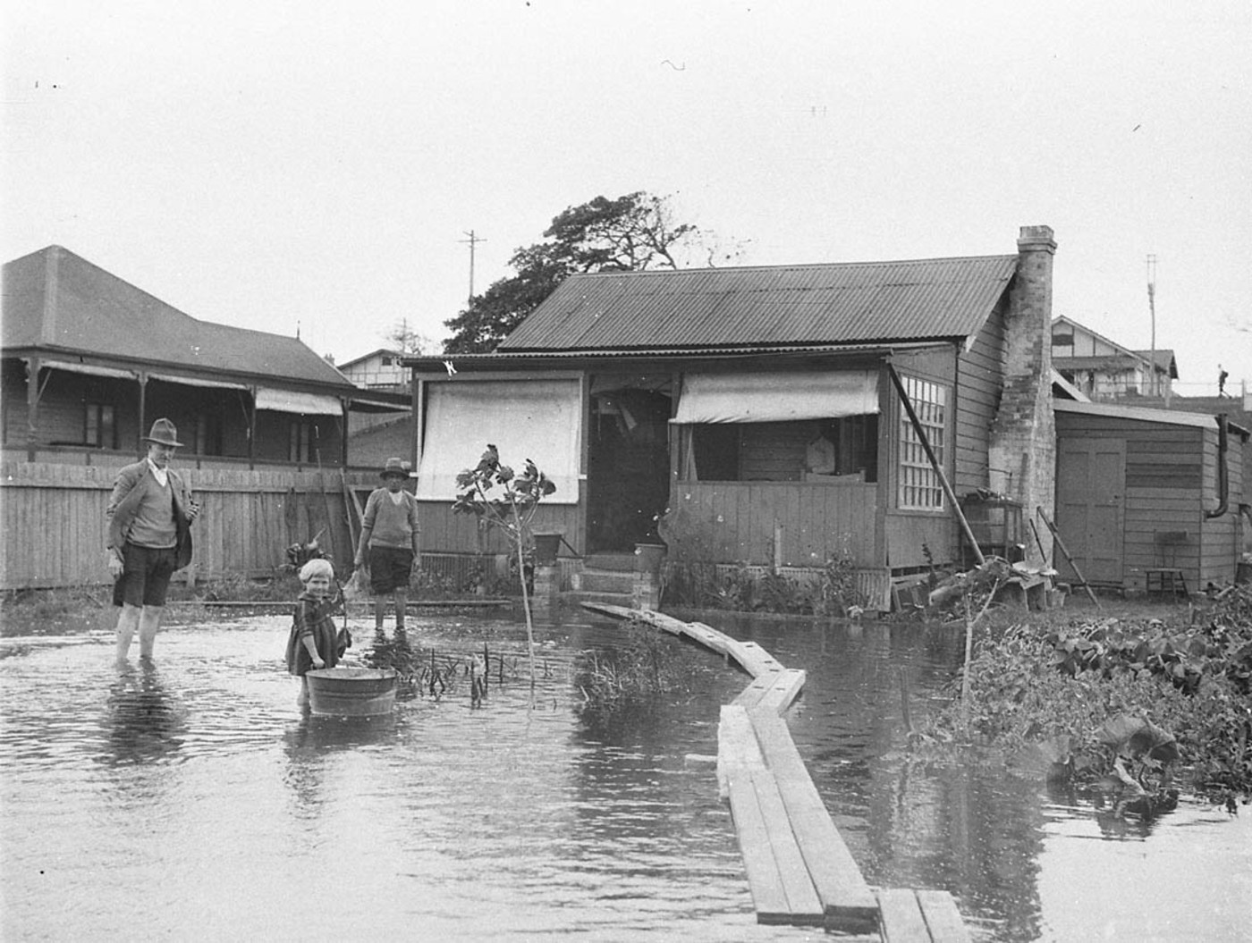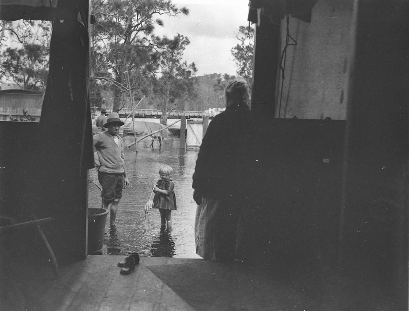 A man, a woman, and a small girl and their flooded house, Narrabeen Image. No: hood_06392h, courtesy State Library of NSW