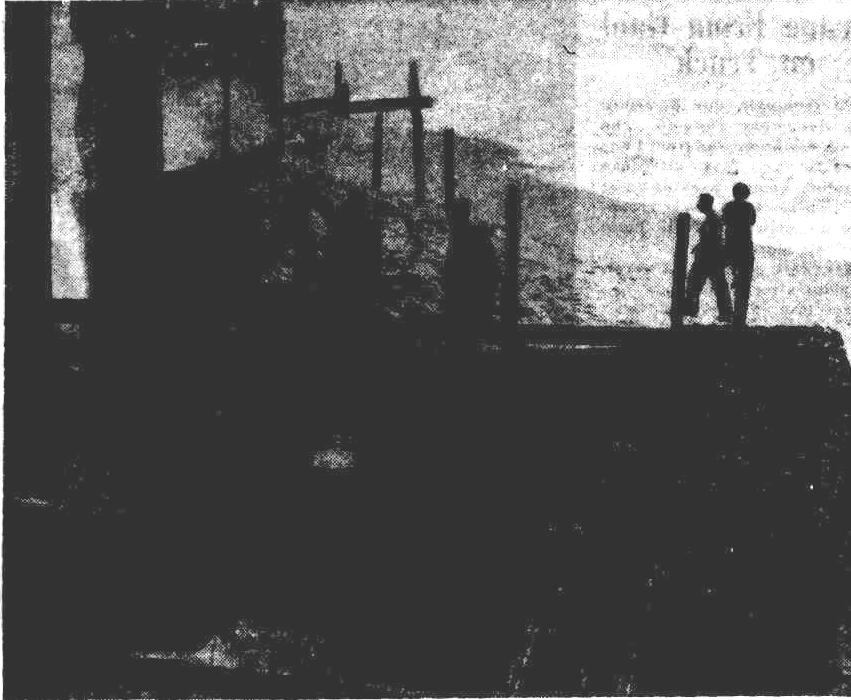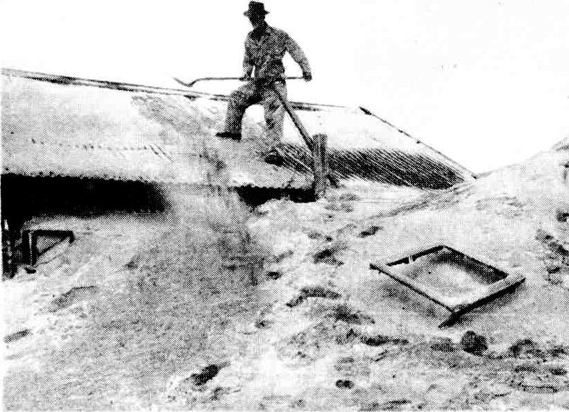 It was war between the Narrabeans and the spreading lake. Rattling shovels In defiance, a body of men employed by the Warringah Shire trecked to the beach with grim set jaws. They were out to teach the lagoon a salutory lesson. While the surf smoked, and the rollers thundered in the grey dawn, twenty shovels bit and hacked at the beach. By the time that the early Spartan surfers appeared on the beach, twenty hats rose and fell In a deep trench through the sand and particles of beach flew In the air from shovels.