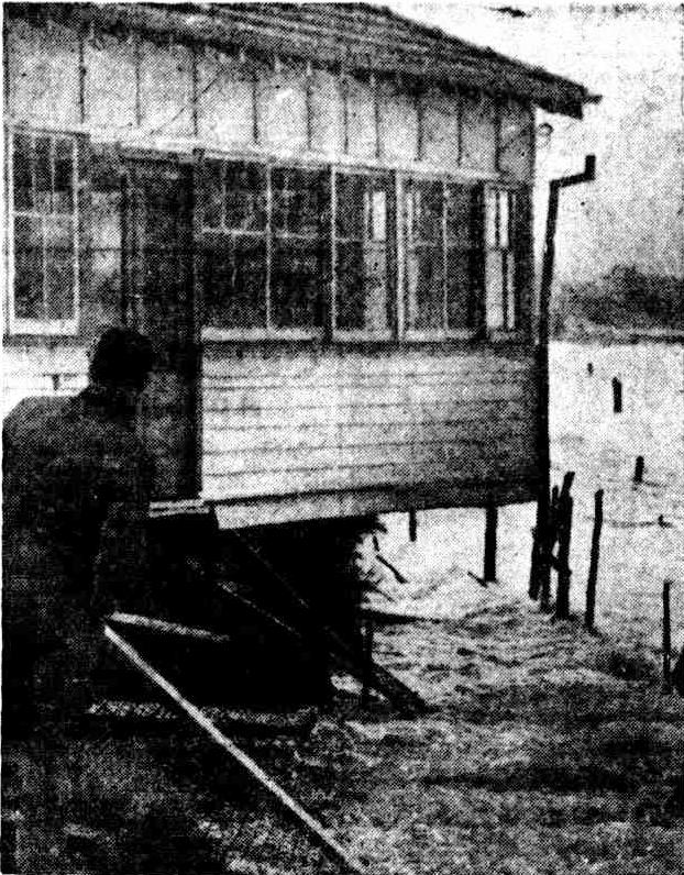 Saturday nights' steady rain set the tributary streams running bankers, and on Sunday the flood to the north of the bridge was six inches under water, and a house near by was quite surrounded. so the shire council officials decided to cut a channel through the sand, an operation which is necessary about three times a year.