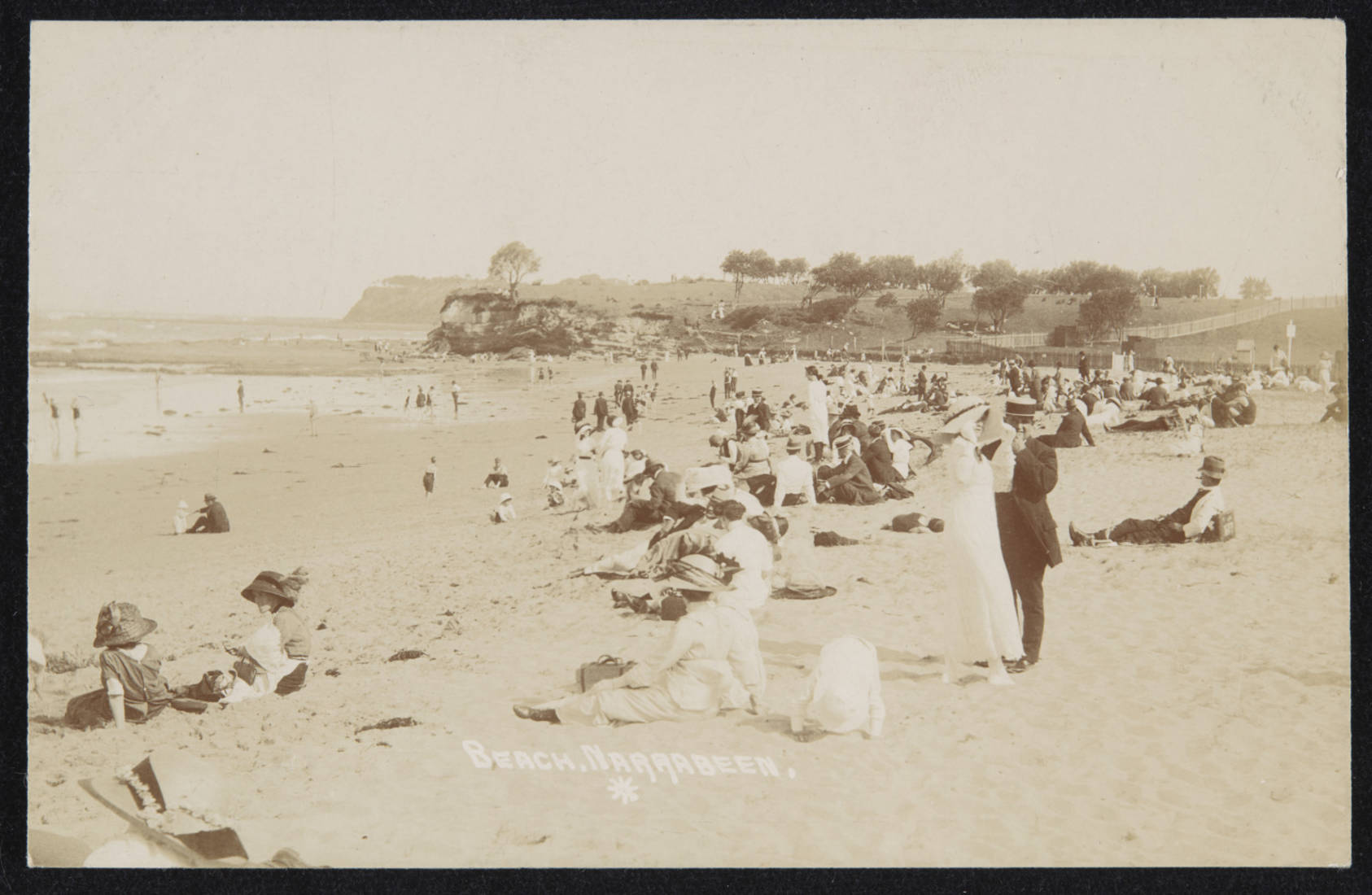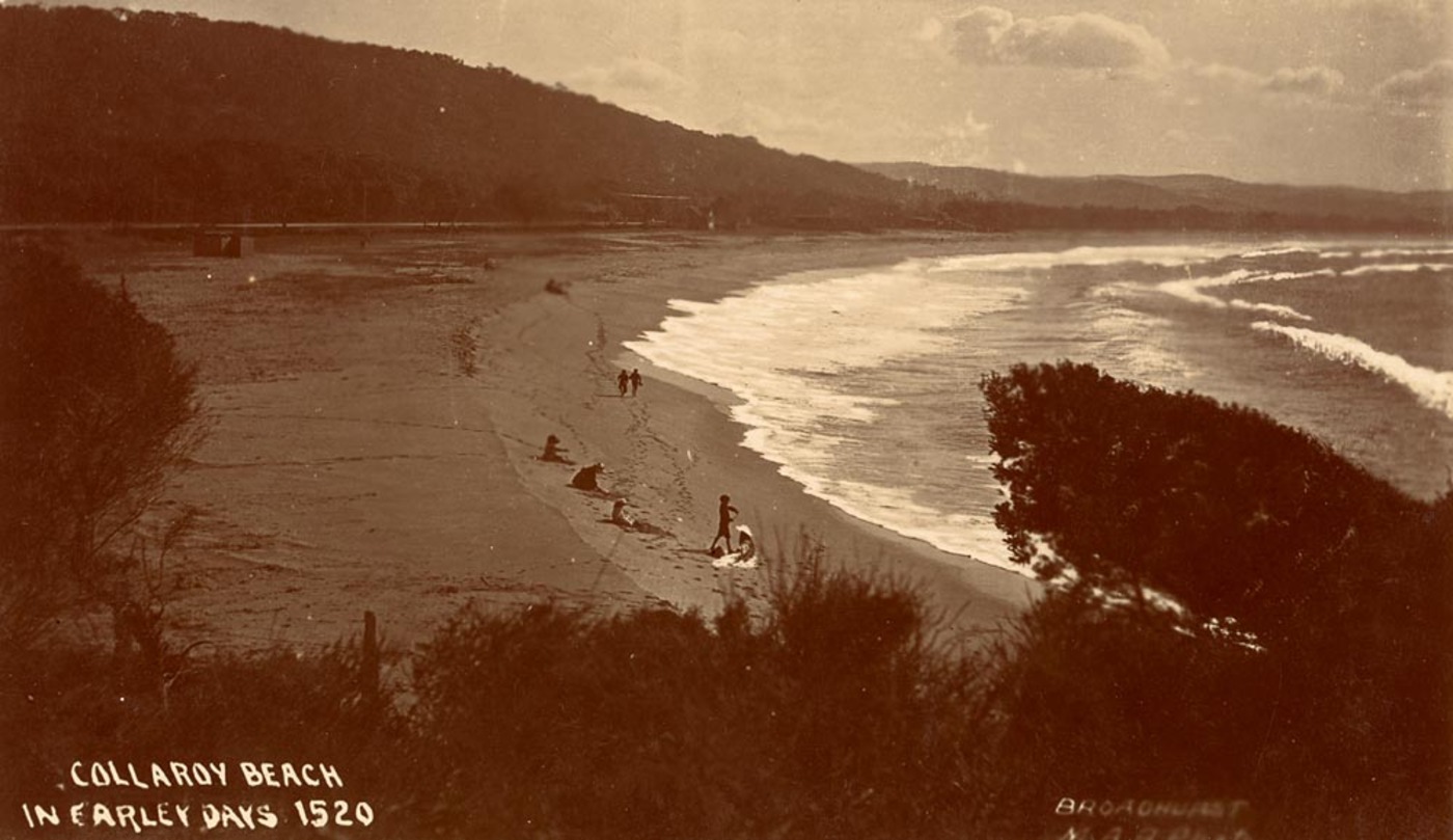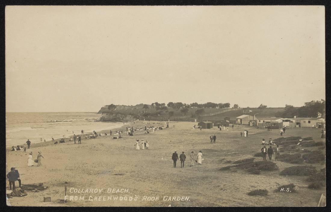 Collaroy Beach in earley [ie. early] days ca. 1900-1927; Sydney & Ashfield : Broadhurst Post Card Publishers, by William Henry Broadhurst, 1855-1927, courtesy State Library of New south wales