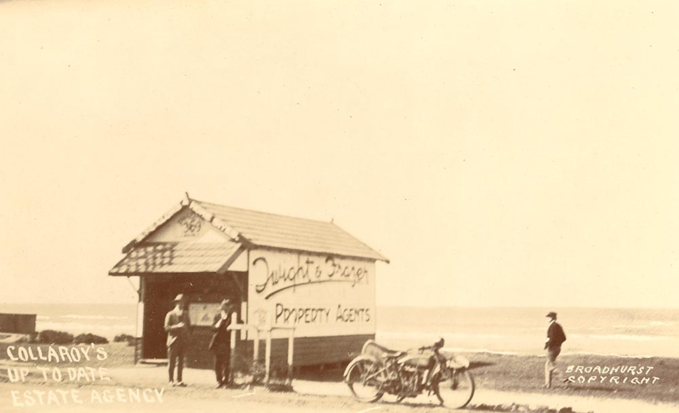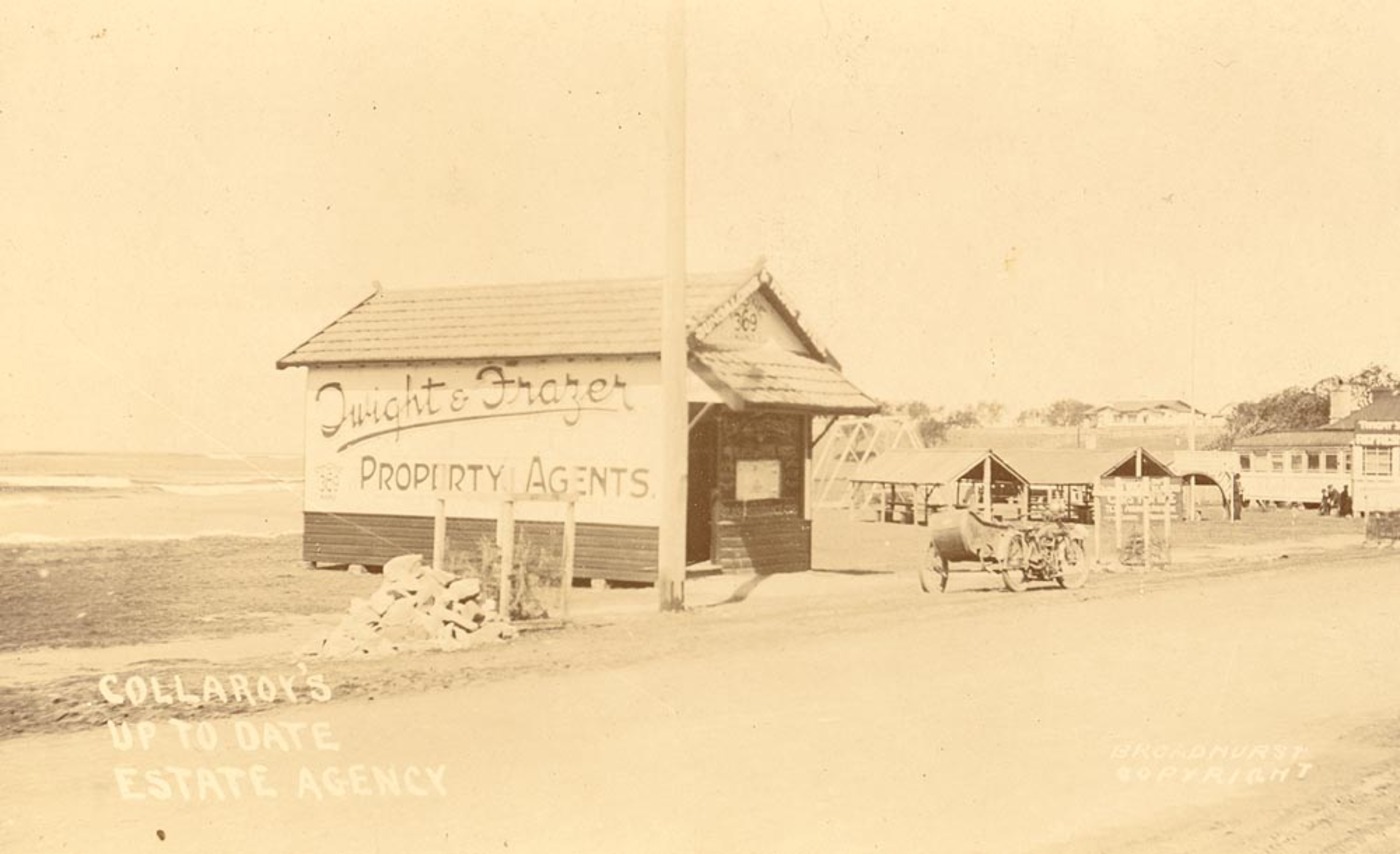 Collaroy's Up to Date Estate Agency [Twight & Frazer Property Agents] from Scenes of Collaroy, N.S.W. Album ca. 1900-1927 Sydney & Ashfield : Broadhurst Post Card Publishers, courtesy The Mithcell Library, State Library of NSW. Images No.: a105164h and below: a105163
