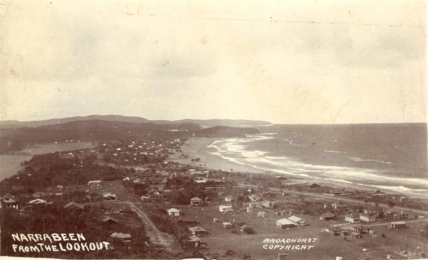 Looking north to Narrabeen, From Scenes of Narrabeen album, circa. 1900-1927 Sydney & Ashfield : Broadhurst Post Card, Images No.: a106058h and below; a105160h courtesy The Mitchell Library, State Library of NSW