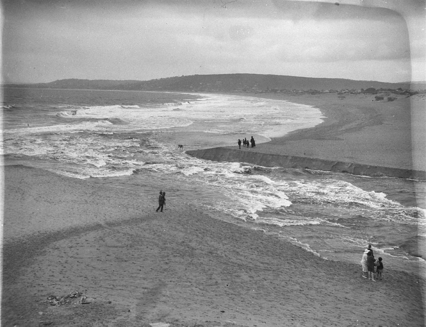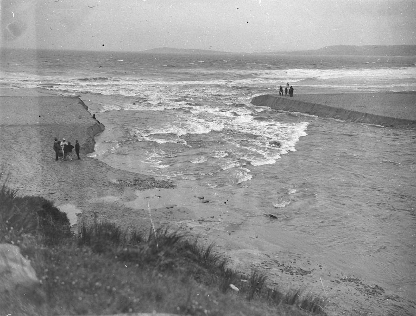 Flood waters from Narrabeen Lake pour into the sea. Image No: hood_06396h, courtesy State Library of NSW