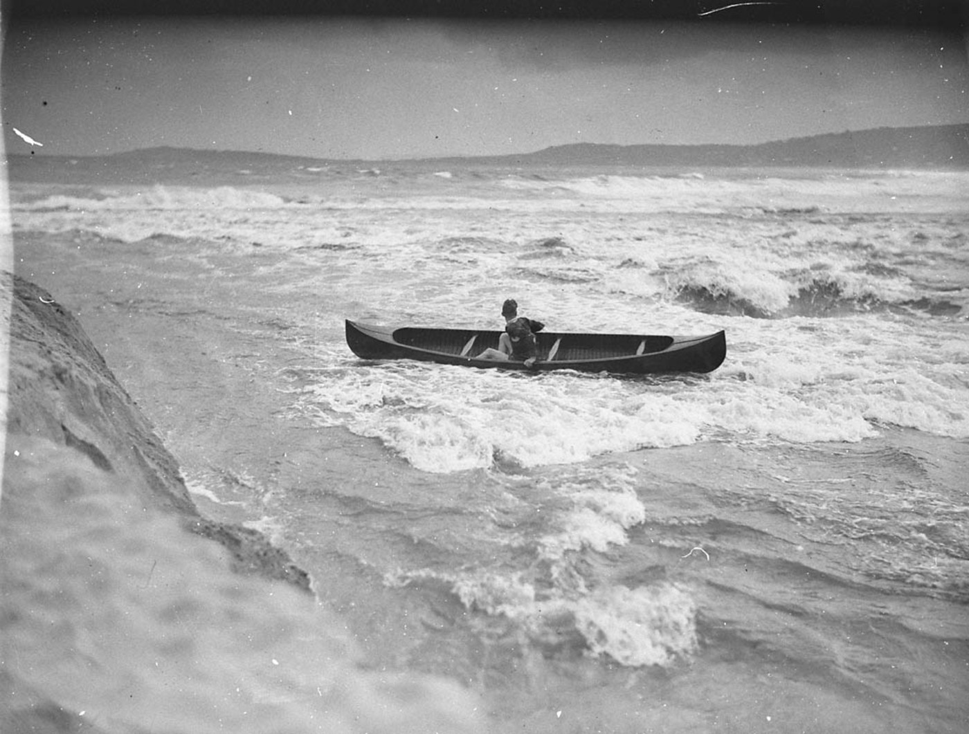 Canoeist in danger as canoe swept out to sea in the Narrabeen flood, Image No.: hood_06405h, courtesy State Library of NSW