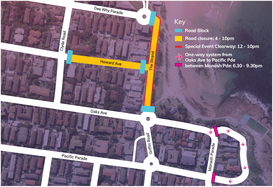 - The Strand between Oaks Avenue and Dee Why Parade (please note this section of The Strand is currently one way northbound)