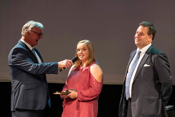 Chloe Van Dam, Junior Clubman of the Year with host Ian Hanson OAM and Jason Falinksi, Member for Mackellar