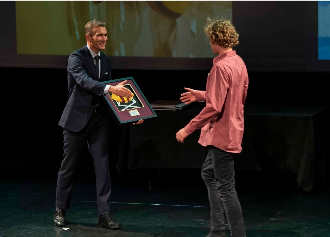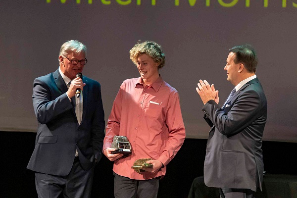 Mitch Morris, Junior Competitor of the Year with host Ian Hanson OAM and Jason Falinksi, Member for Mackellar