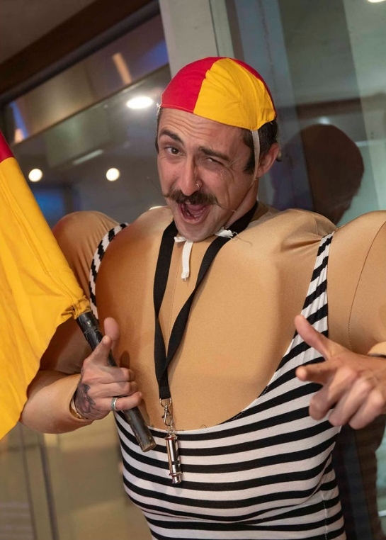 We hired the Singing Sharks and Life Savers on stilts to be our roving entertainment in the Glen Street Theatre foyer.