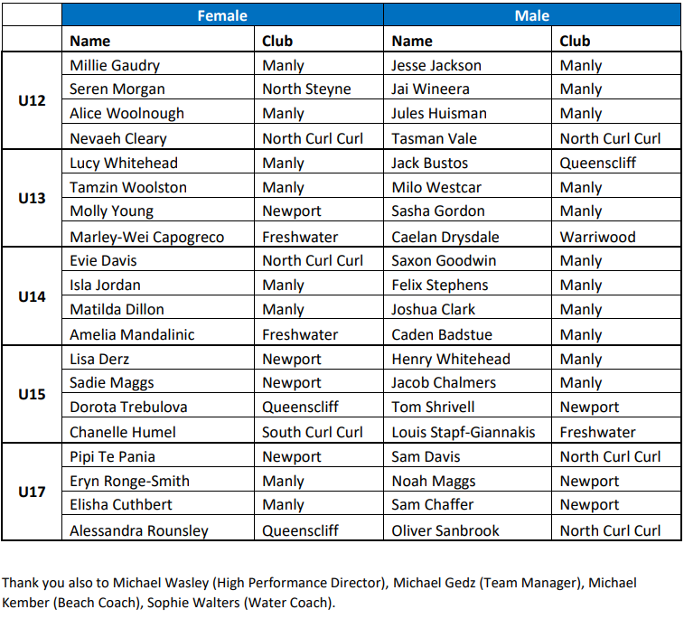 The 2024 SLSSNB Interbranch Team, representing Surf Life Saving Sydney Northern Beaches at the 2024 SLSNSW Interbranch Competition, to be run over 2 days at Cape Hawke Beach on Saturday 30th Nov and Sunday 1st Dec., comprises the next generation of surf lifesavers with team members aged from the Under 12’s up to the Under 17’s.