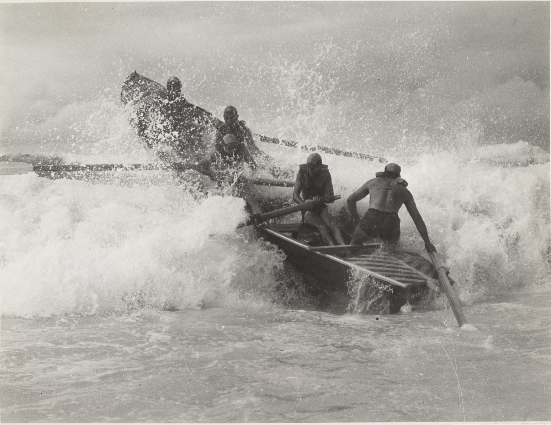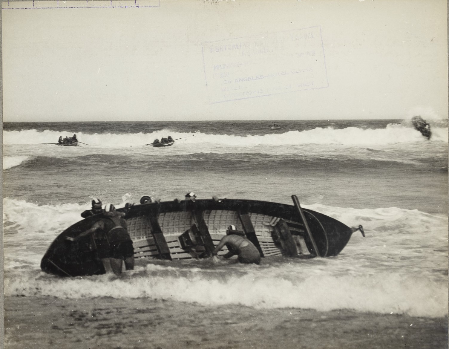 Emptying a swamped surfboat, Curl Curl, no date, Item:SLNSW_FL20059767