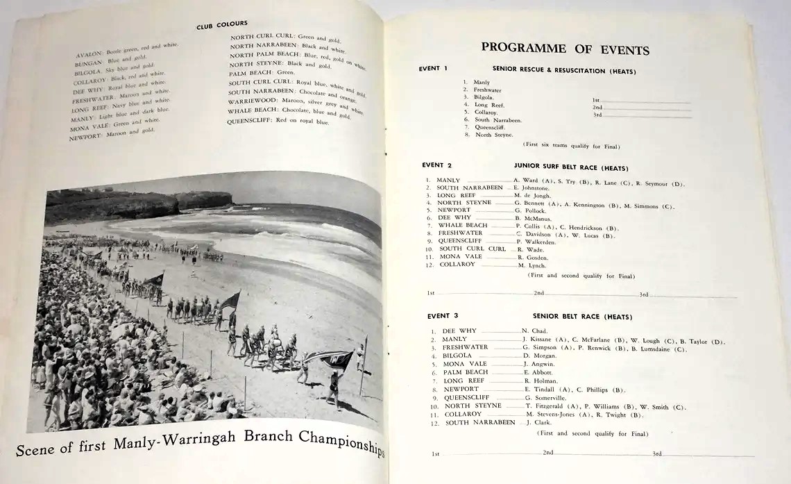 Perhaps most appropriate to his endearing personality was his very first position at the club – that of the Social Convenor, bringing people together. This would lay the foundation for Bob to be a Patrol Captain in the early 50s and steer him into his love of beach sports.