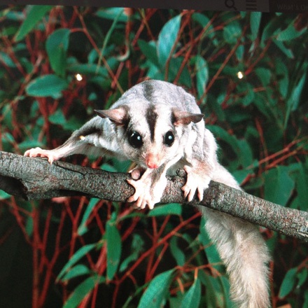 The Sugar Glider is a small arboreal marsupial. It has a head-body length of 16 - 21 cm and a 16-21 cm tail. Social and nocturnal, they live in woodlands that contain tree hollows and sufficient food. Their nights are spent gliding between trees and climbing through the foliage in search of tree sap, nectar, pollen and invertebrates. During the day small social groups containing several adults and that season’s young generally share a common nest in a tree hollow or nest of leaves.
