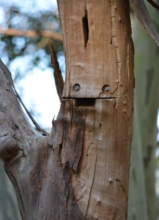 The finished tree now sits comfortably within her front garden and houses a fascinating array of homes for owls, other birds big and small, possums, gliders, antechinus, microbats and an army of wood-loving invertebrates.