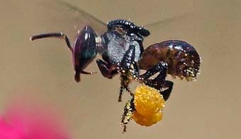 Native bees pollinate our bushland. Most are solitary, however the stingless bee, Tetragonula carbonaria, is the only social bee found in the Sydney area.