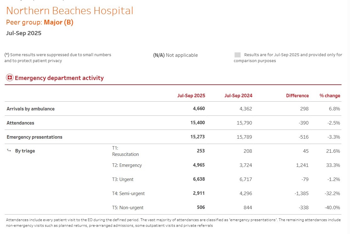 Northern Beaches Hospital: Jul-September 2025 from BHI Report
